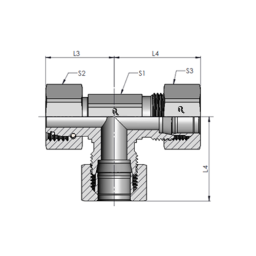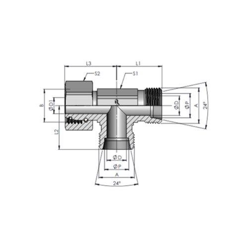 | Tube O.D. | A Thread | B Thread | S1 Hex | S2 Hex | S3 Hex | L1 L2 | L3 | L4 | ØD | ØD1 | ØP | Body Part Number | Assembly Part Number | Torque N-m | Working pressure in Bar |