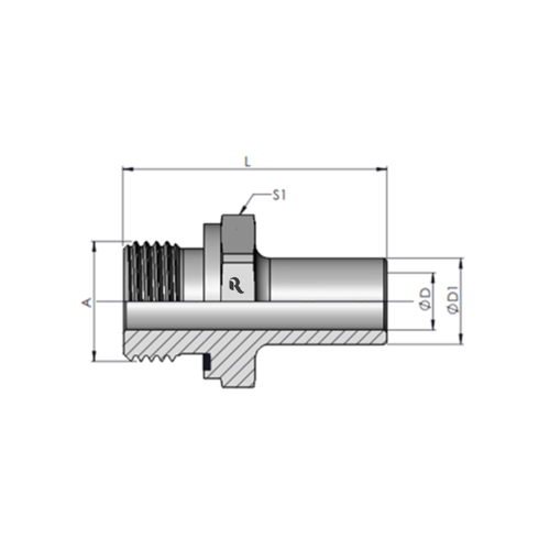 | Tube O.D. | A Thread | B Thread | S1 Hex | S2 Hex | L | ØD DRILL | ØD1 | Body Part Number | Assembly Part Number | Torque N-m | Working pressure in Bar |